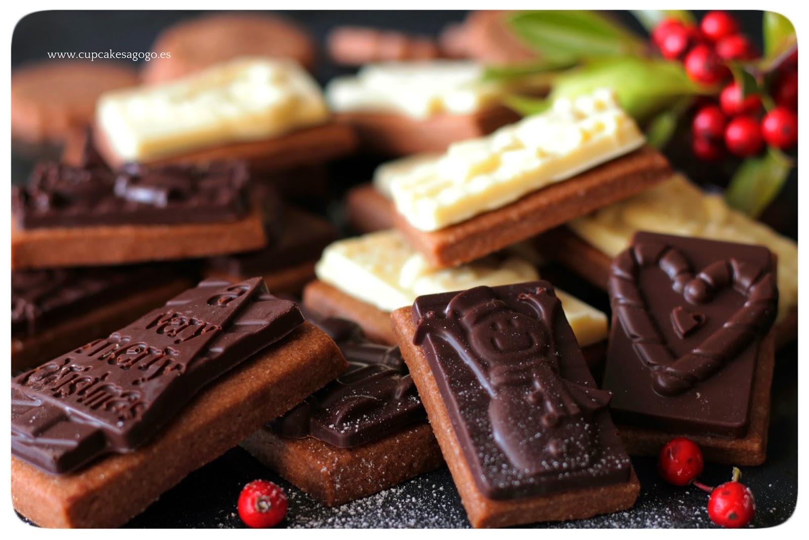 Una vez horneadas y frías las galletas según la receta que os he enlazado o según vuestra receta preferida, sólo queda pegar chocolatina y galleta o con un poco de choco fundido reservado, o como yo hice dándole un golpe de soplete al revés de la chocolatina y pegándola rápidamente sobre las galletas.