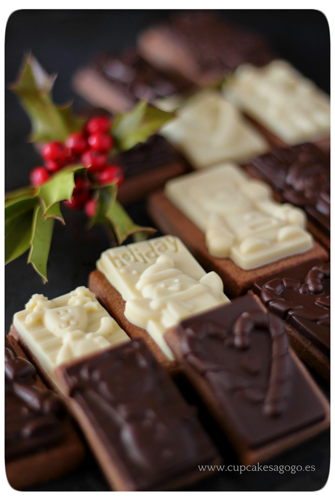 Luego necesitamos unos moldes de silicona para hacer chocolatinas, yo he usado un molde de silicona de la marca Silikomart, pero los tenéis de distintas marcas y formas. Estos me han resultado cómodos porque al ser rectangulares no he tenido que complicarme la vida adaptando la forma de la galleta a la de la chocolatina. Galletas cortadas con un cortador rectangular (o a cuchillo) que acople con el tamaño de la chocolatina y ¡arreando!